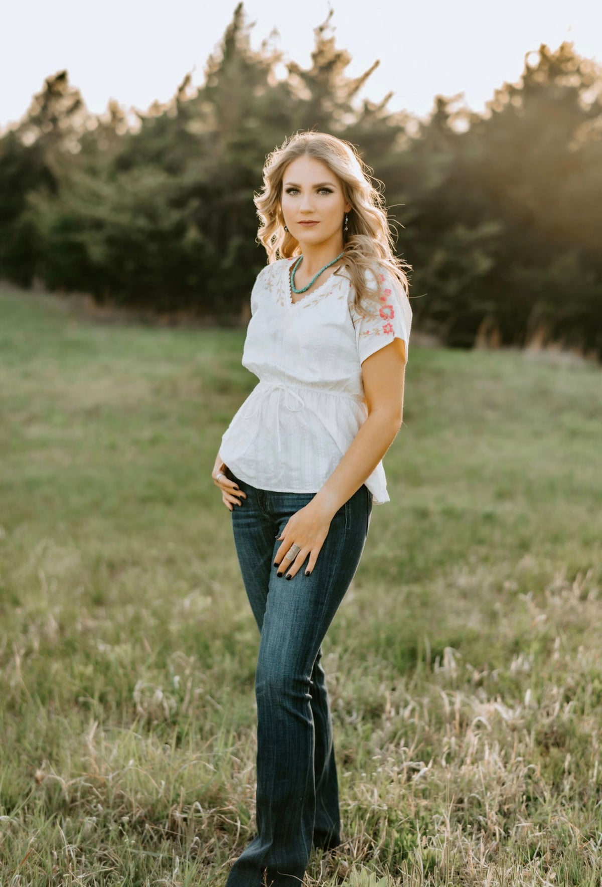 - Blouse features peplum bodice with v neckline & dolman sleeves