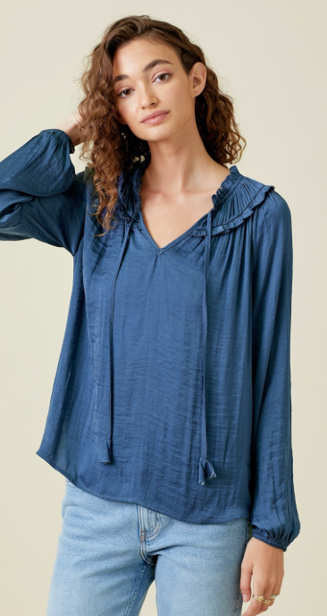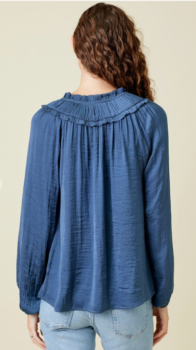 - Ruffled Satin long sleeve blouse