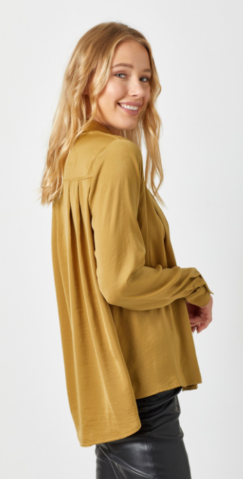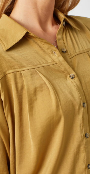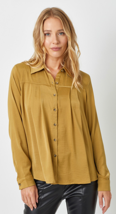 - Satin Pleat Button Down Blouse