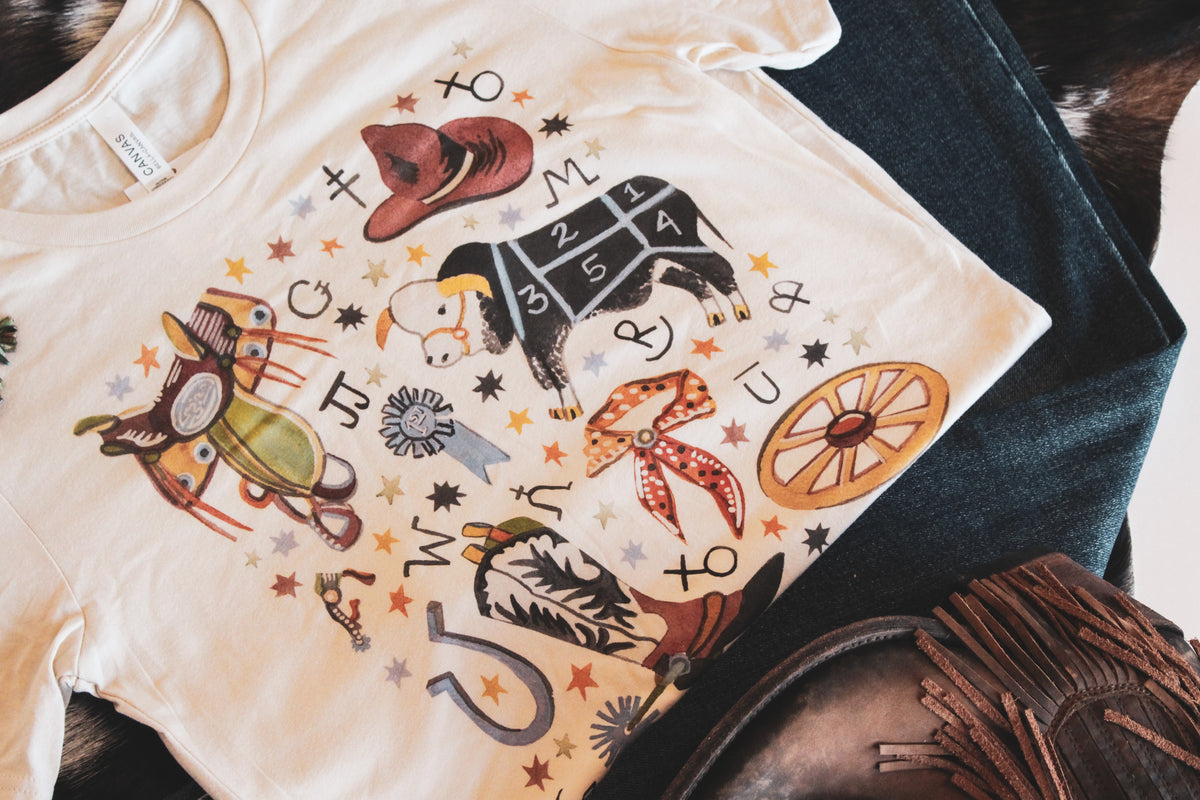 A fabulous 1950s vintage fair themed t-shirt featuring stylish retro graphics!